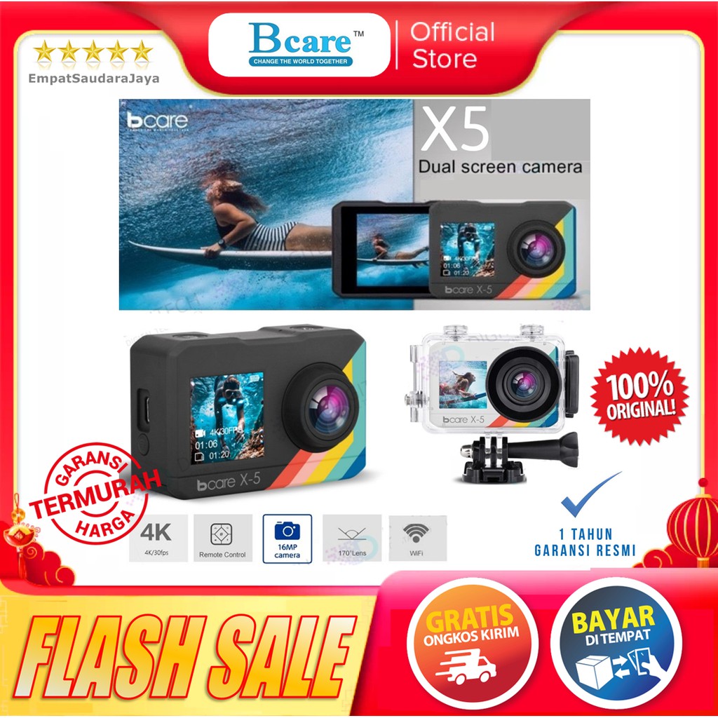 - Produk ini tidak sedang Flash Sale, tidak semua Seller suka Flash Sale, saya rasa ini bukan kekurangan, Jika Anda anggap Harga Rp. 589.000,00 itu murah untuk TERBARU - BCARE X5 Action Camera Dual Screen Touch Screen Sony 16Mp Ultra HD 4k ya ambil saja